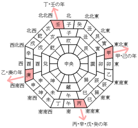 これを恵方巻の風習として2000年頃から日本各地で宣伝やキャンペーンを開始するにあたり、日常的な16方位による簡便な説明をしており、甲とすべき所を「東北東」、丙とすべき所を「南南東」と言い換える例が多くなっている」